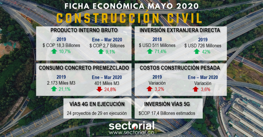 Fedesarrollo estima para 2020 un crecimiento en las obras civiles entre 5,2% y 6,9%. Sin embargo, actores de mercado como Corficolombiana advierten que por el freno de la actividad productiva se podrían dejar de ejecutar entre 0.6 y 3.7 billones de pesos en las vías 4G.